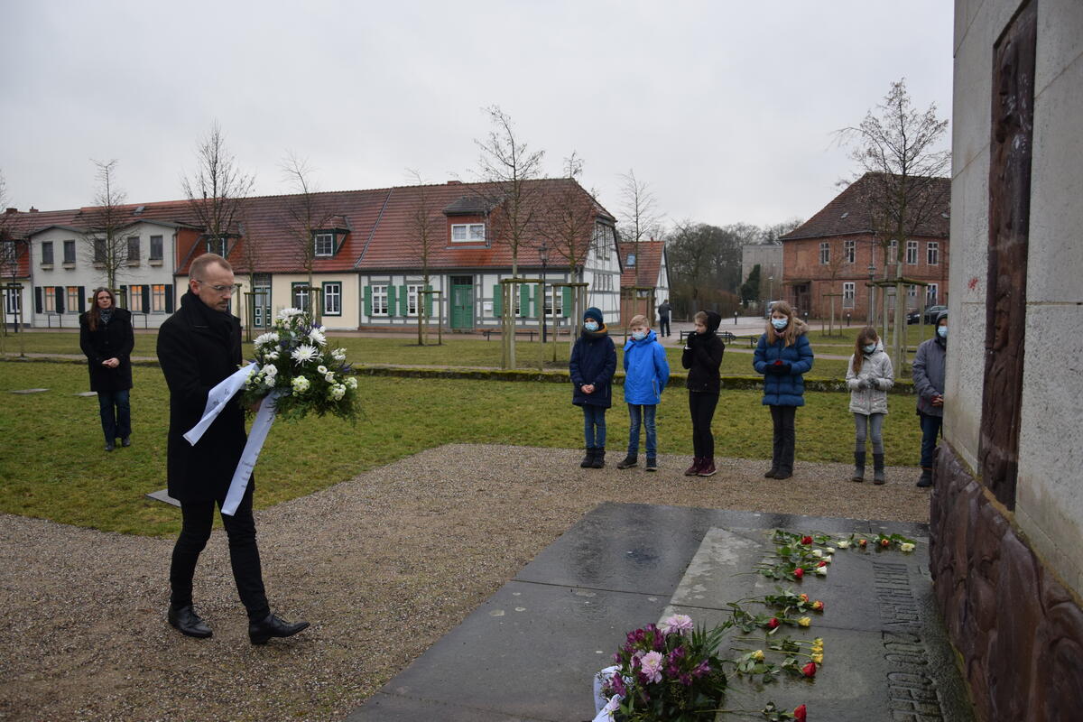 Gemeinsam mit Bürgermeister Reinhard Mach erinnerte Landrat Stefan Sternberg an die zahlreichen Opfer der Nationalsozialisten / Heute vor 77 Jahren wurde das KZ Auschwitz befreit / Mahn- und Gedenkstätte Wöbbelin beteiligt sich an bundesweiter Aktion #LichterGegenDunkelheit