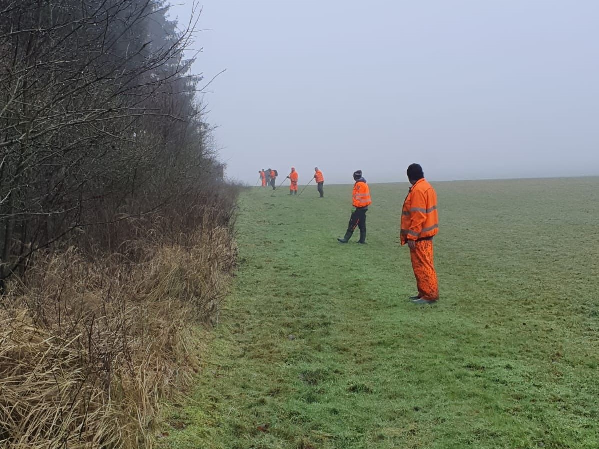 Die Fläche des gefährdeten Gebietes südöstllich von Parchim, das nun nach Fallwild abgesucht wird, umfasst etwa 28.000 Hektar. Eine Mammutaufgabe für die Suchtrupps. Denn eine Menschenkette von sechs bis acht Personen schafft je nach Gelände 60 bis 100 Hektar pro Tag, ein Suchhunde-Team 80 bis 100 Hektar pro Tag. Im Einsatz sind die Helferinnen und Helfer an vier Standorten im gefährdeten Gebiet.